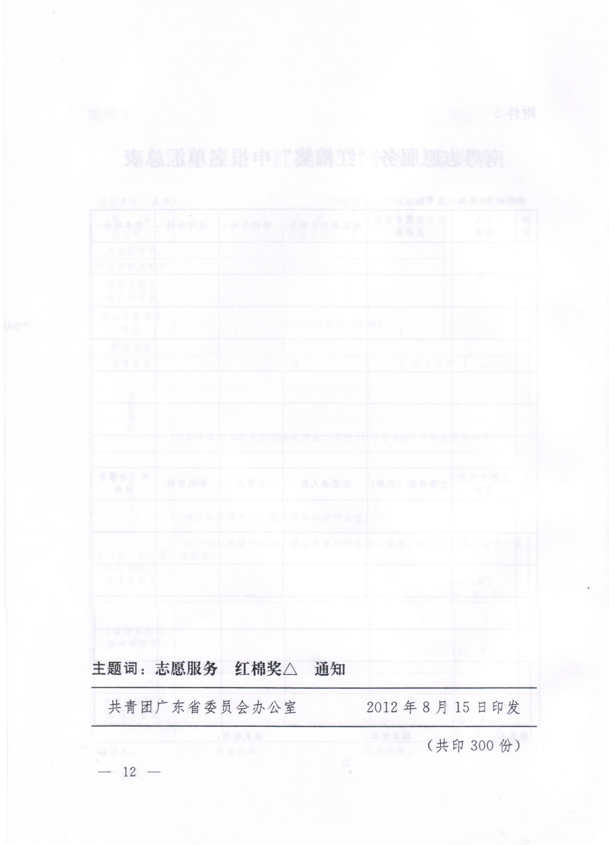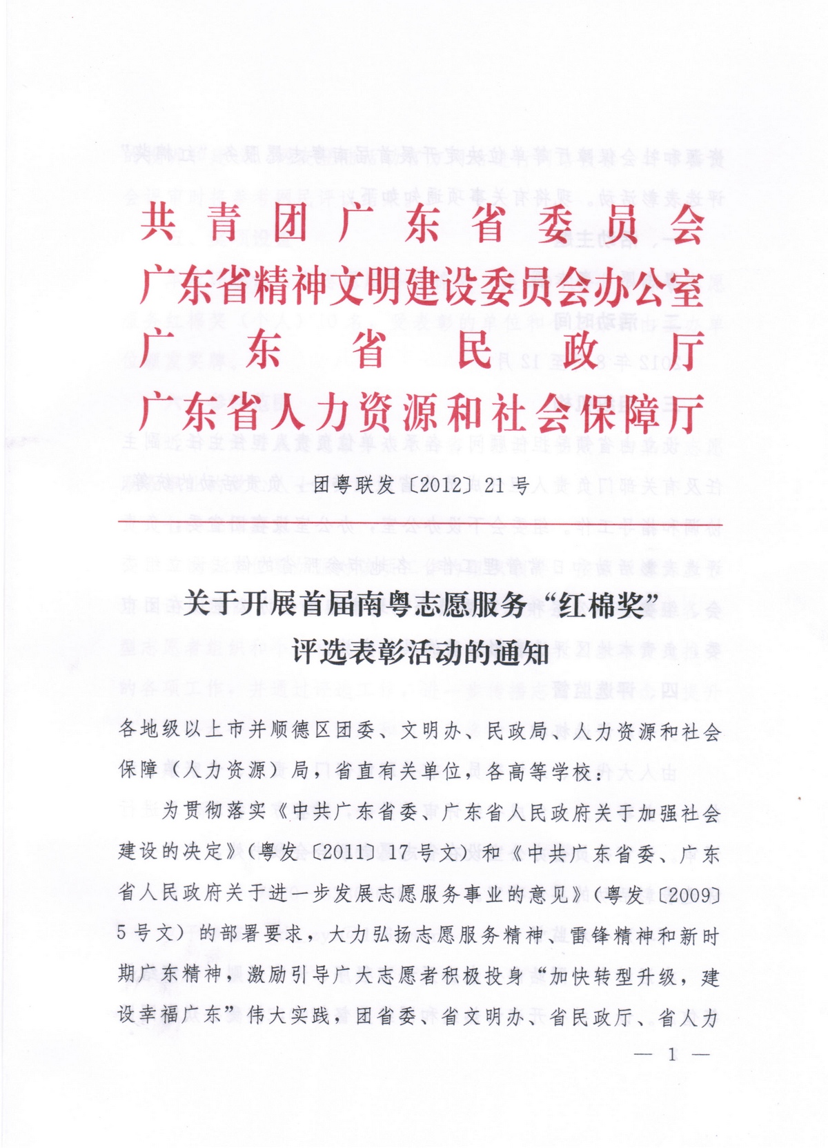 团粤联发2012第21号文《南粤志愿服务红棉奖通知》