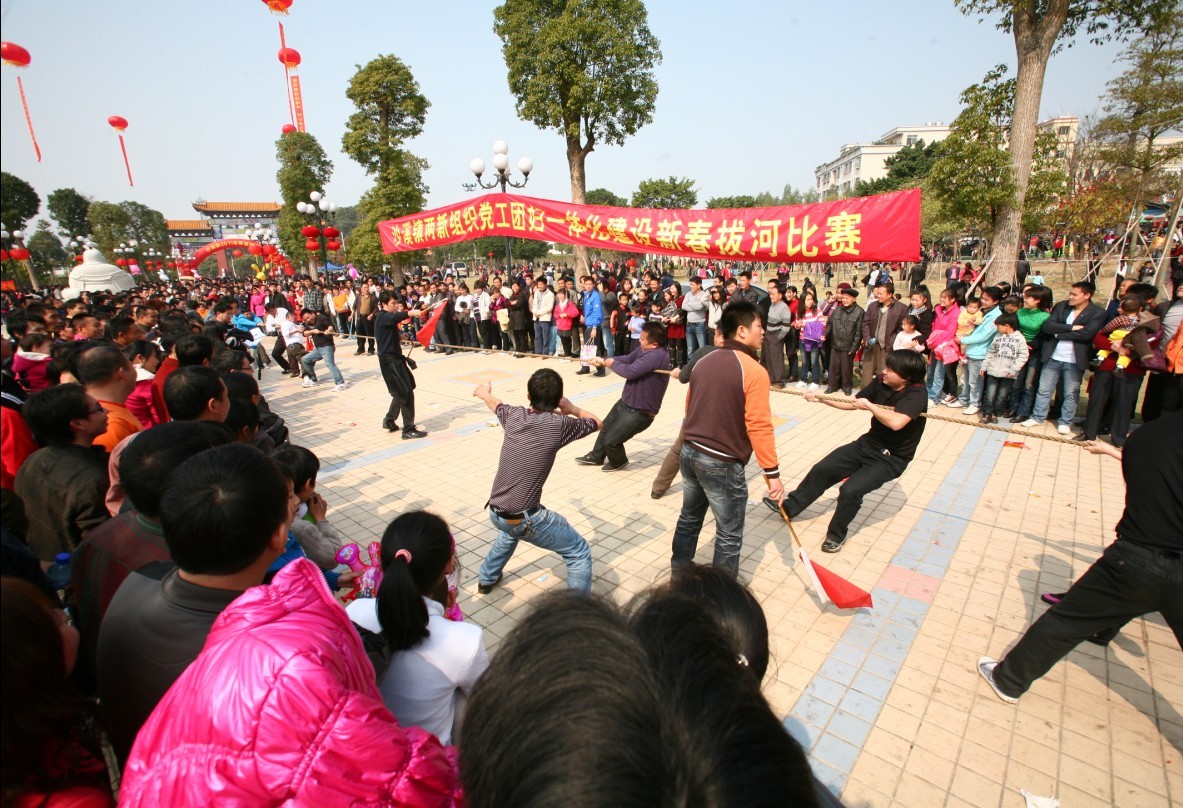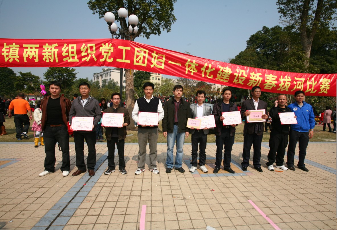 为丰富留在本地过节的青年工人的精神文化生活,同时增强我镇两新组织的凝聚力、战斗力和影响力,按照省、市团委“青春情暖,共建和谐”主题活动的部署,沙溪镇团委联合两新党组织办、工会、妇联等部门,于春节期间在沙溪公园隆重举行两新组织党、工、团、妇一体化建设第三届新春拔河比赛,镇委书记胡永康、镇长周尚谦等全体党委领导班子成员出席了本次活动。本次比赛共有十支队伍参赛,经过两个多小时的激烈角逐,通伟服装有限公司党支部最终脱颖而出,获得了冠军。