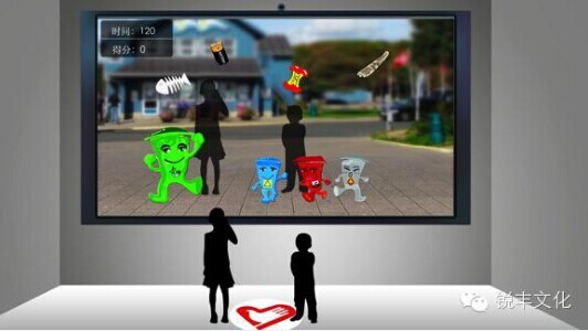 作品设置在少年宫LED大屏,通过高科技的AR互动技术,让小朋友和家长能在现场与大屏幕进行互动游戏,游戏主要以垃圾分类等公益性游戏为主,希望通过此互动游戏能让小朋友和家长都学习到相关的环保知识,养成良好的垃圾分类习惯。
