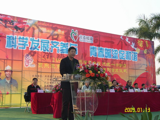 岁末将至春意浓,青春热火送暖流。由团省委、省劳动和社会保障厅、省公安厅、省司法厅、省交通厅、省文化厅、省卫生厅、省体育局、省食品药品监管局、省旅游局、广州铁路(集团)公司等11个单位联合主办,以“科学发展齐参与 青春暖流促和谐”为主题的服务进城务工青年系列活动在元旦春节期间于全省各地火热开展。今年的“青春暖流”活动围绕“平安返乡”、“就业指导”、“文化活动”三大板块,分五大项目八大类开展活动,动员全省各界力量,充分整合资源,务求服务进城务工青年,使他们度过一个健康、欢乐、祥和的春节。