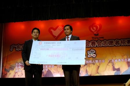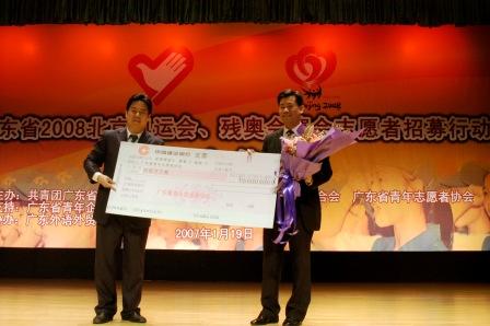 在启动仪式上,广东省青年企业家协会、广东省青年商会向主办单位捐赠活动启动经费共100万元。充分体现了广大青年企业家心系奥运支持公益的良好社会形象。
